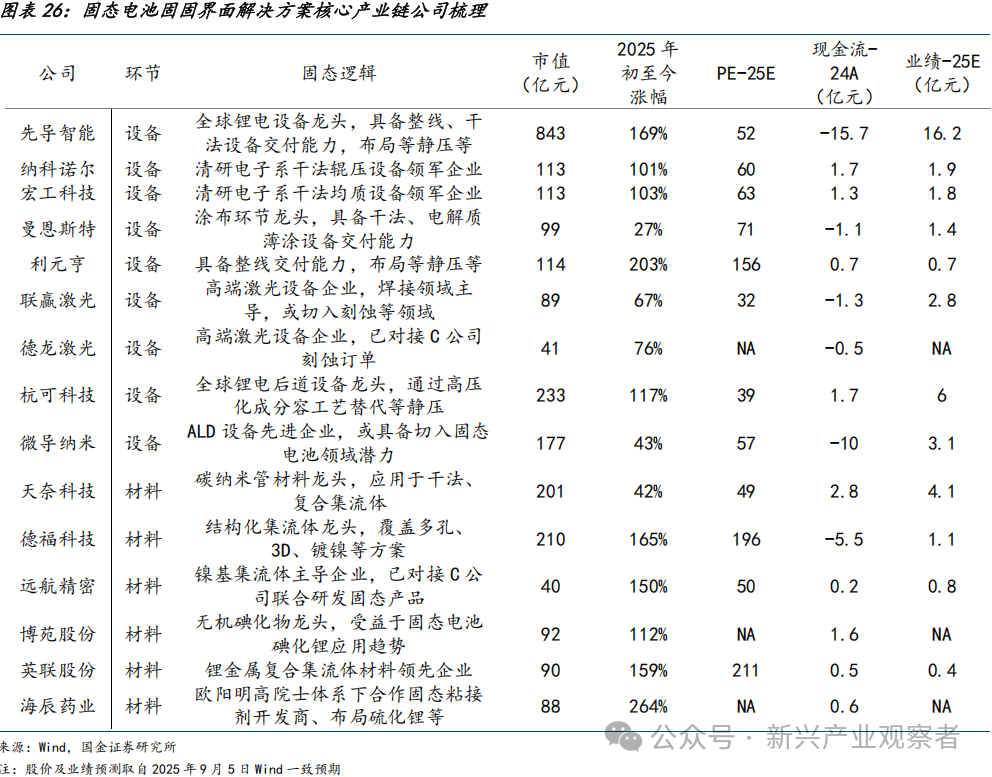 固-固界面作为固态电池产业化的本征关键瓶颈,其突破进度直接决定技术路线成熟度与商业化拐点;赛道具备双重投资价值,其一把握2025~2027年产业化窗口期的关键验证节点,其二捕捉关键材料或设备环节增长弹性。