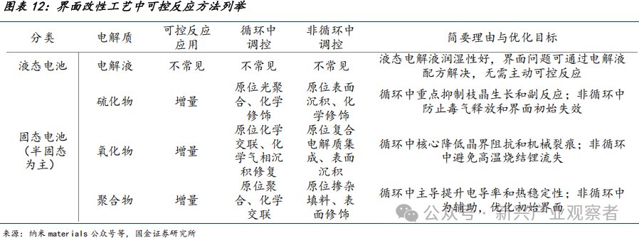 主流用在固态电池领域的界面改性方法包括:涂层、沉积、掺杂、可控反应、合金化。